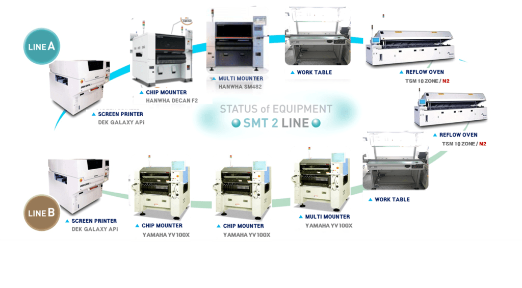 SMT PROCESSING SMT Line Equipment (Main Equipment) SMT Line Equipment (Auxiliary Equipment) Equipment capacity SMT